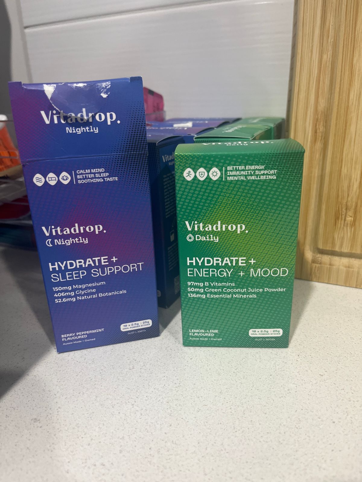 Since getting to know the vitadrop products and using the sleep support first we have added the energy and hydrate powder to our morning routine. Since doing so we experienced greater energy and better focus.